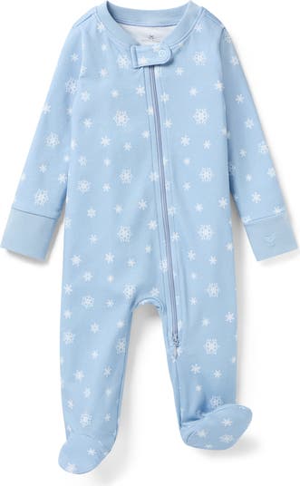 Peruvian pima cotton means breathable and soft comfort in these adorable pajamas that have a snap-tab chin guard and a convenient front zipper for easy changes.