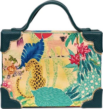 A work of art with a polished, structured silhouette. This handcrafted briefcase bag is wrapped in a beautiful fabric story and finished with sleek corner detailing and a top handle for an effortlessly elevated look. Carry it as a statement bag from cocktail hour to daily celebrations.