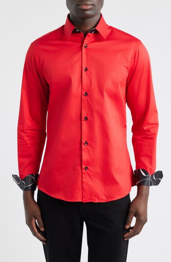 Classic and versatile, this cotton dress shirt features printed silk trim at the cuffs and collar, making this an easy choice that takes your look from desk to post-work drinks.