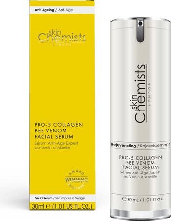 skinChemists Pro- Collagen Bee Venom Facial Serum ml For Firm, Plump Youthful Skin – Your Rejuvenation Solution Struggling with fine lines, wrinkles, or dullness? Our Pro- Collagen Bee Venom Facial Serum is designed for all skin types, delivering powerful results. Infused with Bee Venom, Hyaluronic Acid, and Honey, this potent formula firms, plumps, and smooths your skin for a hydrated and youthful appearance. What It Does: Firms plumps with Bee Venom for a youthful look Hydrates deeply with Hyaluronic Acid for lasting moisture Smooths fine lines and wrinkles for a refined texture Lightweight fast-absorbing, perfect for day or night use The Solution: Fine lines wrinkles? Experience a smoother, more youthful complexion. Dull skin? Enjoy a plump, hydrated glow. How to Use: Apply to clean, dry skin morning and evening for best results. Why You ll Love It: Suitable for all skin types, including sensitive Free from parabens, sulfates artificial fragrance Shop now and experience the difference! Apply our Pro- Collagen Bee Venom Facial Serum to clean, dry skin after cleansing for a hydrated and youthful-looking complexion. Use in the morning or evening for best results.