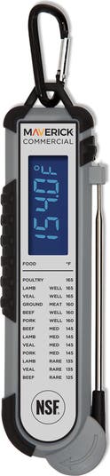 The Maverick Pro-Temp Professional Thermocouple Thermometer is the ultimate tool for professional and residential kitchens alike, delivering precision and reliability that chefs can trust. Its Type K thermocouple with a stainless steel micro-tip probe provides extremely accurate readings to ±0.7°F, while the high-contrast backlit LCD with large 0.5” digits ensures easy viewing, even in busy kitchen environments. Designed for durability, the thermometer is water, dust, and shock-resistant, NSF certified, and includes a built-in meat temperature chart for quick reference. With a wide temperature range from -40°F to 662°F, auto on/off, temperature readings to 0.1°, and a factory calibration certificate to NIST standards, this thermometer combines speed, accuracy, and convenience for worry-free cooking every time.