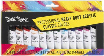 BREA REESE: HEAVY BODY ACRYLIC PAINTS 12 COUNT CLASSIC COLORS - The Brea Reese Heavy Body Acrylic Paints 12 Count Classic Colors set is an essential collection for any artist looking to build a versatile palette of rich, classic tones. Designed for a wide range of painting techniques, these paints offer thick, creamy consistency and exceptional pigment quality, making them ideal for blending, layering, and creating permanent color on various surfaces. Whether you re working on realistic portraits, natural landscapes, or modern abstract pieces, these classic hues are perfect for achieving timeless artistic effects. From mixing natural greens for scenic landscapes to deep blues and reds for portraits, this set is ideal for any project that requires rich, saturated color. The water-based, non-toxic formulation makes these acrylics easy to work with and safe for artists of all experience levels. The permanent, long-lasting pigments provide durability, ensuring your artwork maintains its vibrancy for years to come. Paint Set INCLUDES 12 tubes of acrylic paint.
