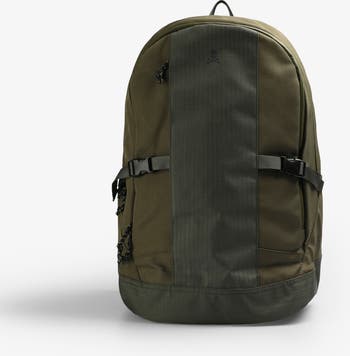 Double pocket backpack|Made of recycled fibres|Zip fastening. Top handle and two shoulder straps. Elasticated adjustable side compartments.