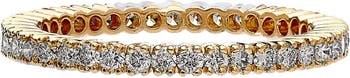 Superior sparkle is achieved with this slim eternity band encircled by a row of 41 prong-set diamonds.