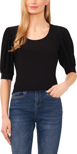 Billowy crepe sleeves frame this soft knit top made with a kiss of stretch for a close fit.