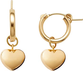 Show your ears some love with this polished pair of dangly, 3d heart hoops. Our signature hinge-closure Maude Hoops are customized with tiny puffy heart charms, designed to add that extra layer of luminosity to upgrade your everyday look. Delivered from the Made by Mary studio in a giftable book-style box, each piece is carefully crafted with your story in mind.