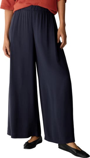 Pull-On Satin Wide Leg Pants