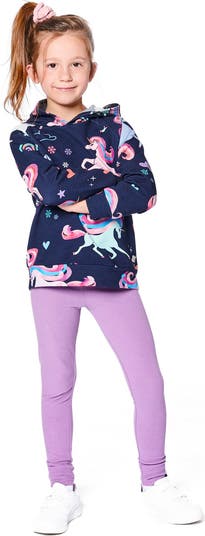 Colorful, cozy, and oh-so-cool, this fleece sweatshirt adds instant style to any little one s wardrobe! Ultra-comfy in stretch cotton fleece, this hoodie features an easy pullover silhouette with long raglan sleeves, stretchy cuffs and a stretch bottom hem, and a bold allover print with unicorns, hearts, and rainbows.