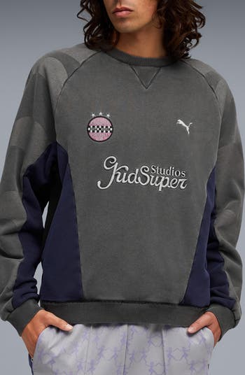 Contrast colorblocking amps up the appeal of this garment-washed French terry sweatshirt made by PUMA and U.S. streetwear brand KidSuper to celebrate England s Premier League Manchester City football club. Made from cotton, it sports an oversized fit with raglan sleeves and features brand embroidery and a club patch.
