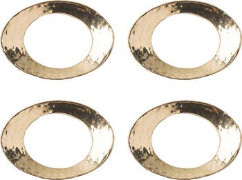 This striking set of hammered-metal napkin rings will lend contemporary golden polish and rich texture to any tablescape.