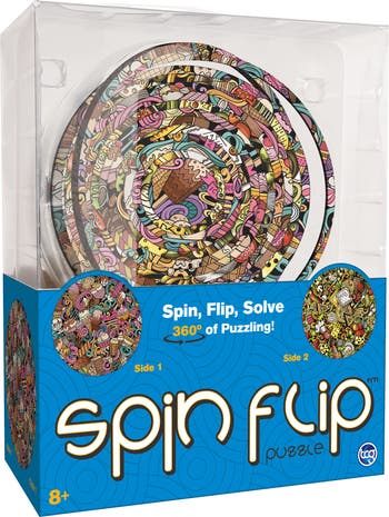 SPIN FLIP PUZZLE: ICE CREAM PIZZA - The Spin Flip Puzzle - Ice Cream and Pizza is a delightful and engaging puzzle game designed to spark your creativity while providing a fun challenge for your mind. This unique puzzle features 14 concentric rings that can spin, flip, twist, and slide, creating a one-of-a-kind puzzling experience that is both stimulating and enjoyable. As you navigate the colorful and whimsical designs, you’ll appreciate the intricate details and vibrant images that come to life with each turn of the rings. The puzzle is double-sided, offering complementary images on both sides, which not only adds to the challenge but also doubles the fun as you work to solve each side. Perfectly sized to fit in the palm of your hand, this compact puzzle is designed for portability, making it an ideal companion for a variety of settings. Whether you’re on a road trip, at work, or waiting in the doctor’s office, the Spin Flip Puzzle can easily be taken along to provide entertainment and relaxation wherever you go. In addition to being a fun puzzle, it serves as a fantastic fidget and relaxation tool. The act of spinning and flipping the rings provides an effective way to decompress and relieve stress, making it great for use at your desk. It’s especially beneficial for individuals with ADHD, ADD, or autism, as it helps enhance focus and concentration while providing a calming sensory experience. When you’re done playing, it easily stores flat, allowing for effortless travel and minimal storage space. This engaging puzzle promises hours of entertainment for puzzle lovers ages 8 and up.