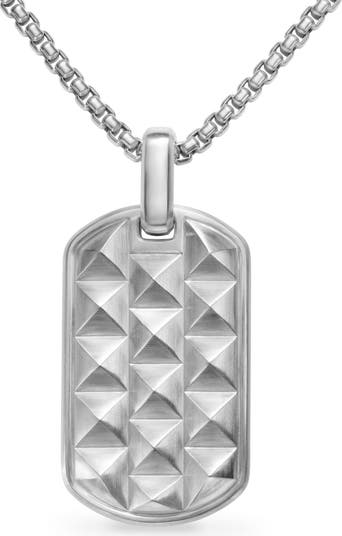 Enhance your favorite chain with this sculptural sterling silver tag covered in dimensional pyramids.