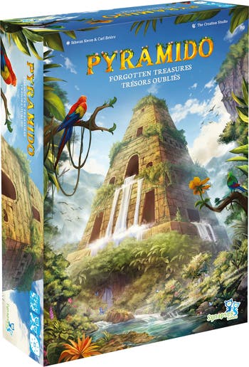 IN PYRAMIDO: FORGOTTEN TREASURES, the multi-level scoring game, players explore their pyramid and create areas with as many matching Gem icons as possible. Each pyramid will be composed of 20 Dominoes arranged over 4 stages. On their turn, players choose and place a Domino on their pyramid and take a Gem from the corresponding area. Upon completion of a stage, they can place the Gems they have collected on their pyramid to activate scoring areas. Once all 4 stages have been played and each player has completed their pyramid, the player with the most points wins the game and the title of Great Explorer.