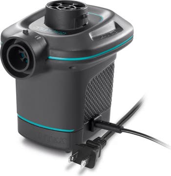 This Intex Air Pump is a great tool to have around any home. This air pump includes nozzles for 3 common sizes providing maximum function. It s great for inflating airbeds and pool toys in no time, and it plugs into standard household electrical outlet, so it s convenient to use. Intex Quick Fill Pumps have a sleek aerodynamic design with the power to inflate even the largest inflatables in a breeze. They re versatile, with 3 interconnecting nozzles to fit small, medium, and large air valves. UL Number: 10078257666390. WARNING: CHOKING HAZARD -- Small parts. Not for children under 3 yrs. CAUTION: Electrical shock hazard.