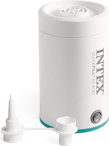 INTEX: QUICKFILL: AC400 ELECTRIC PUMP - The INTEX QuickFill AC400 Electric Air Pump is a compact and powerful solution for inflating or deflating air mattresses, large pool floats, and more. Designed to fit comfortably in the palm of your hand, this electric pump combines portability with exceptional performance. With a maximum airflow of 400 L/minute and a pressure of 0.57 PSI, the QuickFill AC400 makes inflation and deflation effortless and fast, all while operating with minimal noise. It includes three interconnecting nozzles, allowing compatibility with a variety of valve sizes, so you can use it with a wide range of inflatable products. This air pump also features a built-in thermo protection to prevent overheating. Whether you re preparing for a camping trip or setting up a poolside party, the INTEX QuickFill AC400 Electric Air Pump is your go-to device for hassle-free inflation and deflation. Compact, quiet, and efficient—it s everything you need in a portable air pump. KEY FEATURES OVERVIEW: 1) Portable Design: Lightweight and compact for easy use and transport. 2) High Compatibility: Comes with 2 interconnecting nozzles to fit multiple valve sizes. 3) Powerful Airflow: Delivers up to 400 L/minute for rapid inflation and deflation. 4) Pressure: 0.57 PSI for efficient performance. 5) Versatile Usage: Perfect for air mattresses, pool floats, and other inflatables.