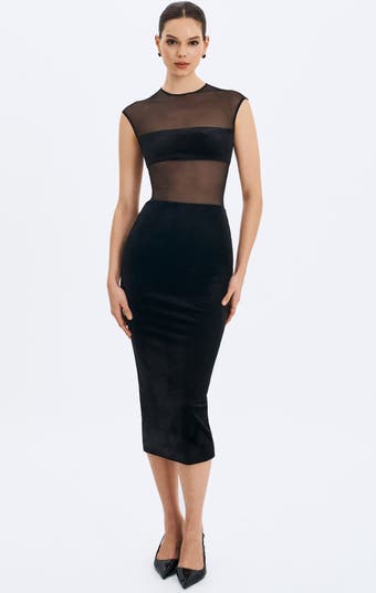 Quielle Mesh and Velvet Midi Bodycon Dress