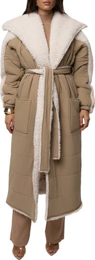 This longline coat keeps you and your outfit protected while you enjoy a night out and is highlighted by plush high-pile fleece for an added dose of cozy warmth.