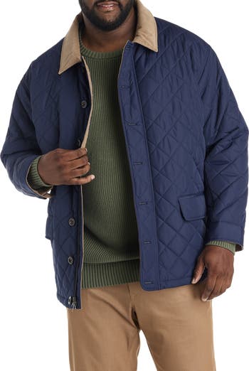 This walking coat from Oak Hill boasts style details that elevate your Fall wardrobe. Classic diamond quilting and a corduroy collar adorn the ideal top layer for transitional weather. Crafted in 100% polyester and designed at DXL with proper proportions for Big and Tall guys, it s also water-resistant, making it a must-have layer, season after season and for years to come._x000D_