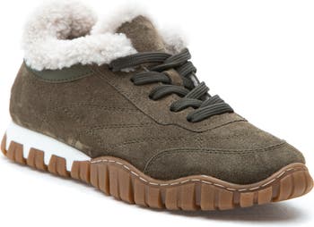 Keep your feet toasty in this luxuriously soft suede sneaker lined in fluffy genuine shearling and grounded by a grippy lugged sole.