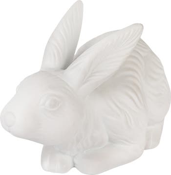 - A charming stoneware table lamp shaped like a rabbit, finished in bisque white