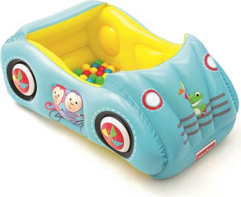 Vroom, Vroom! Kiddos will rev their creative engines when they see the Fisher-Price Race Car Ball Pit. This fun, imaginative ball pit for car loving tots is the ideal combination of fun and safety for little ones. This inflatable ball pit features fun graphics, cushiony side walls and soft floor. Best of all, 25 multi-colored play balls are included. The safety valves make sure the item doesn t leak air during play while making the inflation and deflation process a breeze. Ages 2 and up. Weight capacity up to 99 pounds. Use only under competent supervision.