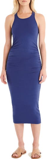 A racerback tank dress offers lean lines in a midi-length cut that hugs you in stretchy cotton jersey with ruched sides to soften the fit.