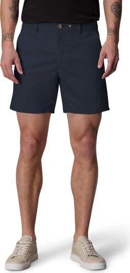 Luxe Japanese stretch twill brings a smooth, comfortable feel to flat-front chino shorts in a slim, modern profile.