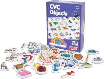 RAINBOW CVC OBJECTS: MAGNETIC ACTIVITIES LEARNING SET - Unlock the magic of early reading with Junior Learning Rainbow CVC Objects a vibrant set of 40 magnetic foam objects designed to help children master consonant-vowel-consonant (CVC) word patterns. Each object represents a familiar CVC word like bat, pig, or fox, making phonics practice visual, tactile, and memorable. Sized perfectly for small hands—approximately 2 inches per piece—these objects are easy for children to pick up, move, and manipulate during learning activities. This all-in-one phonics kit provides a comprehensive approach to early reading and word-building. It includes three distinct sets of magnetic foam objects—CVC Words, Blends, and Magic-E Words—covering essential phonics patterns for beginner readers. Each object sticks easily to magnetic surfaces such as whiteboards, providing countless opportunities for interactive word-building and spelling games. The bright visuals and tactile design appeal to young learners, helping them associate sounds with corresponding words in a fun, memorable way. Children can explore initial, medial, and final sounds by identifying each object and sounding out its phonetic components. Ideal for independent play or guided instruction, this hands-on resource promotes phonemic awareness, sound recognition, and early decoding skills. Use them on magnetic boards with letters or on their own. The possibilities for playful learning are endless! Built to withstand frequent classroom or home use, the pieces maintain their shape and magnetic strength over time. This durable construction allows for long-lasting, mess-free literacy play, giving educators and families a dependable tool for phonics learning that children love to use.