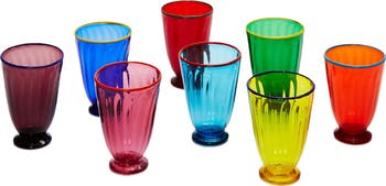 Be the hostess with the definitive mostess with this set of eight rainbow hued glasses guaranteed to blow the happypants off even the most popular of dinner party guests. Created in partnership with world-renowned Venetian glassmaker Salviati, each handmade glass is ridged with a contrast rim and features all the unique signs and marks of the island s production methods: those rings, bubbles and marks are supposed to be there. The perfect addition to any maximalist, print-happy table setting!