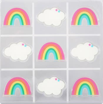 Kids can play tic-tac-toe to their heart s content with this lucite set detailed with rainbows and clouds.