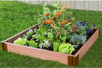 An easy introduction to raised bed gardening. Raised gardens are a perfect way to involve children in gardening while using minimal space! This raised bed is the perfect place to start developing the skills and experience the joys of growing plants. With 16 square feet of available planting area, there is room to grow an assortment of vegetables, herbs, or flowers. Eco-friendly kit is made from recycled plastic, so it won t rot, splinter or become infested with unwelcome critters. Tool-free snap-lock joints make it simple to install. Each modular kit includes four 2" Classic Sienna composite boards, and four 2" tool-free snap-lock stacking brackets. Everything you need except the soil and plants. Measures: 4 L x 4 W x 6"D.