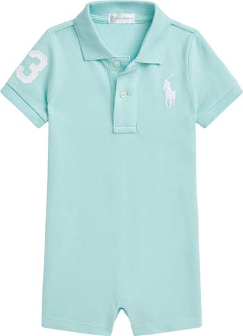 Classic Ralph Lauren details add a perfectly preppy twist to this polo-inspired cotton-mesh romper.