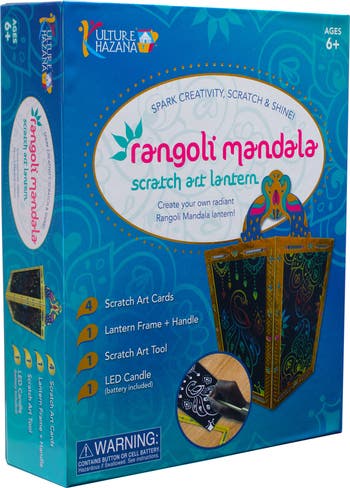 - SPARK CREATIVITY, SCRATCH SHINE: Create your own radiant Rangoli Mandala Lantern. The assembled lantern is 12" tall. Light up with the LED candle!