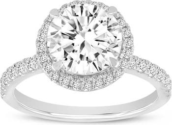 This elegant 2.95 Ct round shaped lab grown diamond ring has an iconic stunning halo design and is made in 14K white gold. An elegant piece of jewelry that acts as the perfect engagement ring but also a suave cocktail ring as well. The ring is accompanied with an IGI certificate with the certificate number inscribed within the band. Diamond carat weight may fluctuate 0.05 carats ABOVE the stated number.