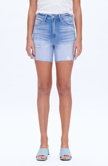 Made from lightweight stretch denim, these casual-cool shorts feature distressed details, a high waist and an easy mid-thigh length.