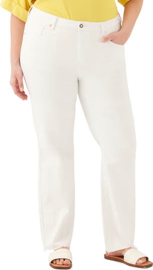 Frayed raw hems and a crisp white wash give these stretch-kissed jeans a modern vibe that will make them an instant favorite.