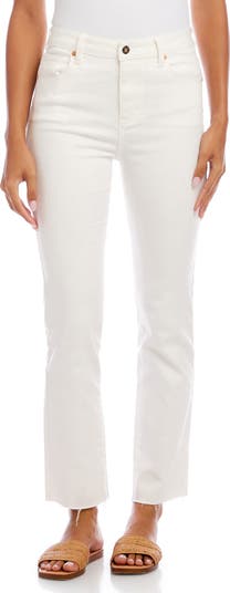 Frayed raw hems, and a crisp white wash give these stretch-kissed jeans a well-loved vibe that will make them an instant favorite.