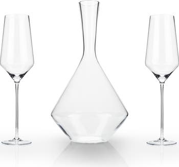 The classic Bordeaux wine glass and decanter combo, updated with exaggerated angles. It s familiar, with a little edge.
