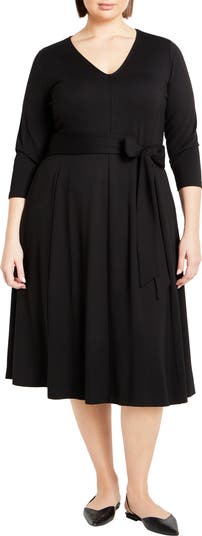 Made from shape-retaining stretch-ponte fabric, this figure-skimming midi is framed by three-quarter sleeves and centered with a defining tie belt.