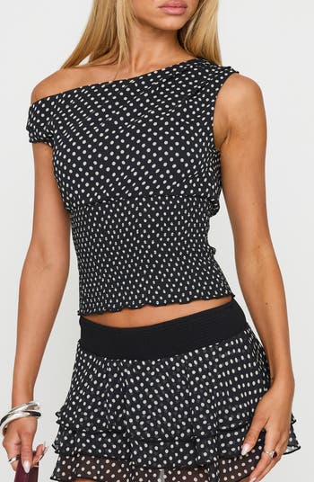 Ready To Party One-Shoulder Polka Dot Top