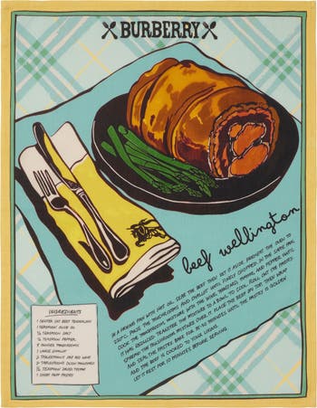 A two-piece tea towel set made in Italy from linen cotton. The first design is printed with hand-drawn artwork featuring the British festive favourite, mince pies, complete with a recipe and Burberry Check backdrop. Paired with a plain cloth, woven with a logo banner and cutlery motif.||Rectangular