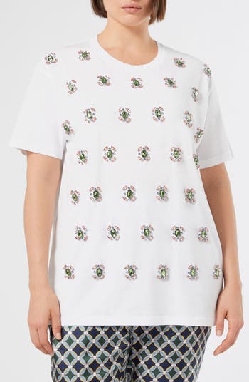 Sparkly sewn-on stones artfully cover this glamorous crewneck T-shirt made from soft cotton jersey cut in a relaxed fit.