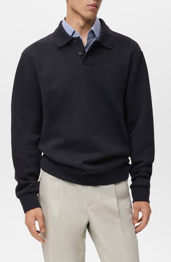 A polo neckline elevates the style of this easy-fitting sweatshirt that s densely knit to create a smooth, soft feel.