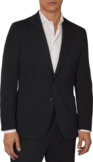 This sleek sport coat moves with you thanks to its stretchy seasonless blend while the rich texture adds depth to its minimalist design.