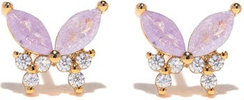 Bring a subtle touch of whimsy to your ensemble with these dainty butterfly stud earrings alight with sparkling cubic zirconia.