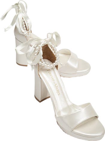 Renee Ivory Platform Sandals with Pearls from Forever Always Shoes are the epitome of timeless elegance, designed to make a statement at any special occasion. Crafted from high-quality ivory faux leather, these heels offer a sleek and sophisticated look while ensuring lasting comfort. | Designed with double pearl ankle straps, these sandals exude luxury and sophistication. For added versatility, the box includes both double pearl straps and regular ankle straps, allowing you to customize your look. Featuring a 4.3-inch (11 cm) block heel and a 1.2-inch (3 cm) platform, Renee provides the perfect balance of height, stability, and all-day comfort—making them an ideal choice for weddings, galas, and any event where style matters.