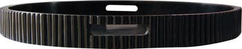 This resin pleated tray with handles in black is a beautiful and practical addition to any home. It is made of resin, which is a durable and durable material that is lightweight and easy to clean. It has a pleated design that creates a textured and elegant effect on the surface, making it a unique and eye-catching serveware. It has handles that make it easy to carry and transport. It has a round shape that is perfect for serving drinks, snacks, desserts, or appetizers, or for displaying candles, plants, or ornaments on a table or countertop. It can suit any farmhouse, industrial, vintage, or French country style kitchen or dining room. It measures 20 inches in diameter and 2 inches in height, making it a generous and spacious tray. This will impress the guests and enhance the food presentation.