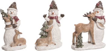 - Charming set of 3 multicolor Transpac Resin Sweet Forest Snowman Figurines, perfect for Christmas tabletop decorations, each measuring 8.25" H x 6.75" L x 2.75" W, easy to care for with spot or wipe clean. Easy to maintain with simple spot or wipe clean care, ensuring your festive decorations stay looking fresh and vibrant. Delightful Transpac Resin Sweet Forest Snowman Figurine Set of 3, perfect for adding a festive touch to your Christmas home decorations, featuring vibrant multicolor designs and ideal for indoor tabletop display. Whats Included: 1 set of these beautiful, easy to care for accent decorations.