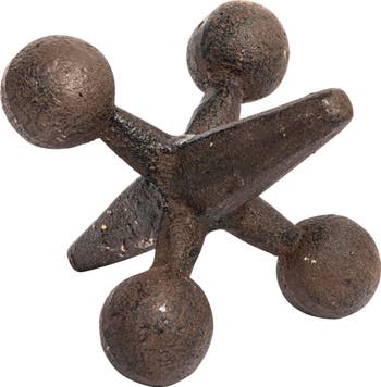 Wonderful large cast iron jack with an antiqued rust colored finish. Very interesting decorative piece for your home, will fit with a variety of styles. It would also make a very unique gift idea. It is the perfect vintage-inspired addition to your doorstep. This jack s artistic silhouette and design were influenced by the Victorians, who were the first to use sculptural elements as doorstops.