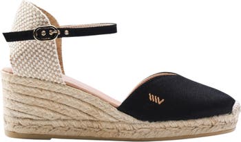 Reus Canvas Espadrille Wedges: Comfortable Medium Wedge Ankle Strap Espadrilles Step into effortless elegance with our Reus medium wedge ankle strap espadrilles. These comfortable canvas espadrille wedges offer a little extra height with their chic 2.7-inch jute wedge heel. Featuring a classic closed rounded toe and an adjustable ankle strap atop an all-natural jute sole, these women s espadrille shoes are designed for all-day wear. Finished with a super soft, breathable canvas upper, they ll keep your feet fresh 24/7. Step out in confidence and style in these authentic espadrilles, meticulously handcrafted in Spain. These versatile Spanish espadrille wedges are the perfect blend of comfort and style for any occasion.